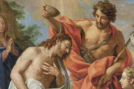 Jezus’ doopsel in aanwezigheid van zijn Vader en van zijn Moeder