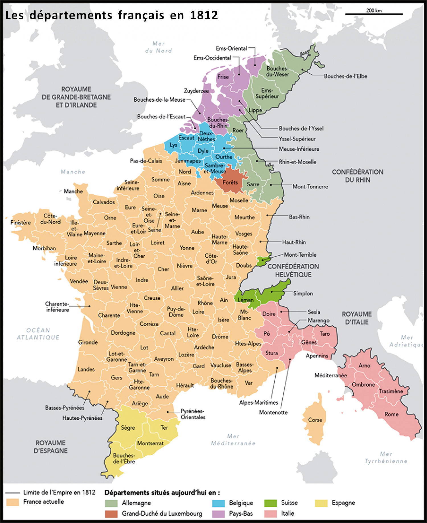 Om de historische provincies van het Ancien Régime te liquideren voerde de Revolutie de departementen in, waarvan de grenzen op pure willekeur berustten en die naar waterlopen of gebergten genoemd werden. Napoleon legde dat systeem ook op in de gebieden die hij bij het keizerrijk annexeerde.